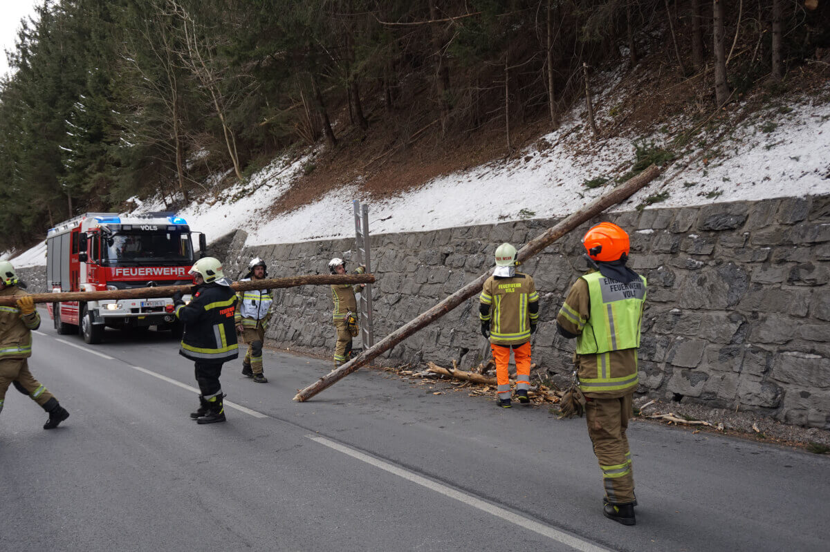 Freitag Mittag wurde die Feuerwehr Völs zu zwei umgefallenen Bäumen auf der Götzner Straße alarmiert. Durch einen Windstoß rutschten diese auf den Randbereich der Straße und stellten ein Verkehrshindernis dar. Während die Exekutive eine wechselseitige Verkehrsregelung aufbaute wurden die Bäume mit der Motorsäge gefällt und entfernt.