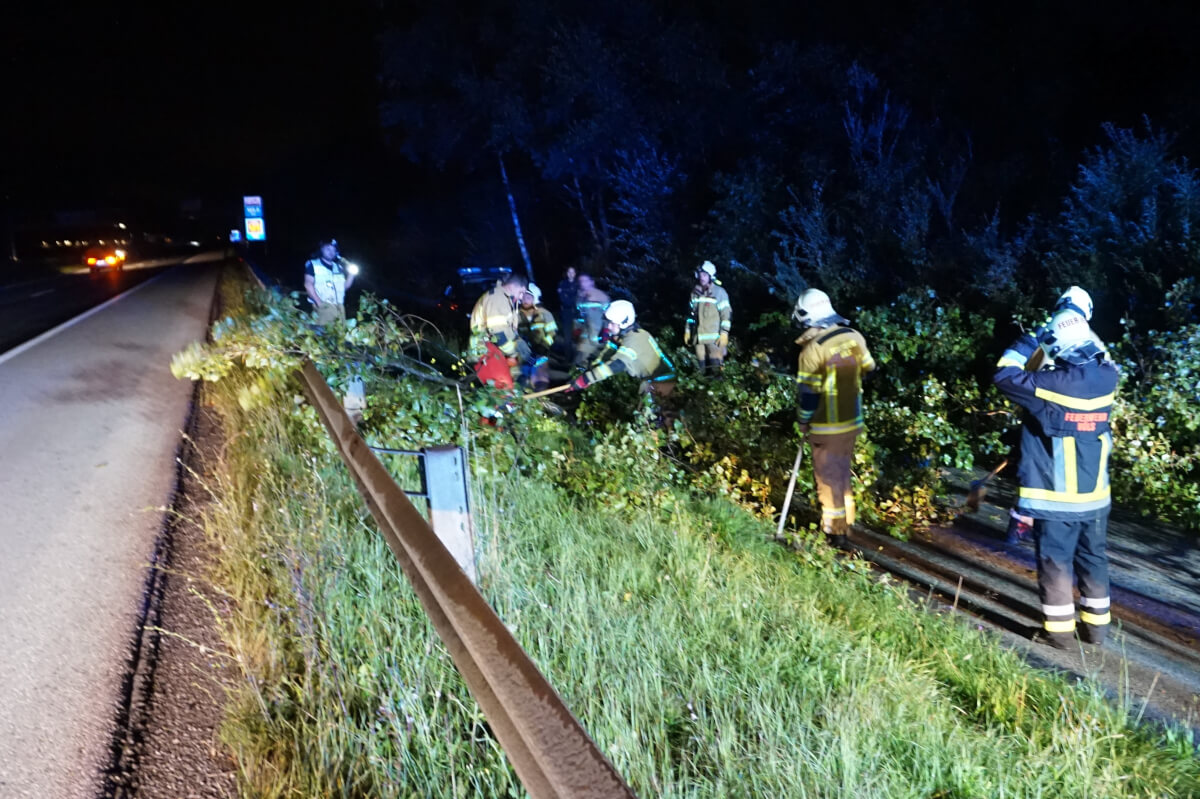 In der Nacht auf Dienstag wurde die Feuerwehr von der Polizei zu einem umgestürzten Baum, der den Radweg blockierte und auf die Autobahn ragte, alarmiert. Der Baum wurde mit einer Motorsäge gestückelt und verräumt, anschließen wurde die Straße gereinigt, um eine Gefährdung für den Radverkehr auszuschließen.