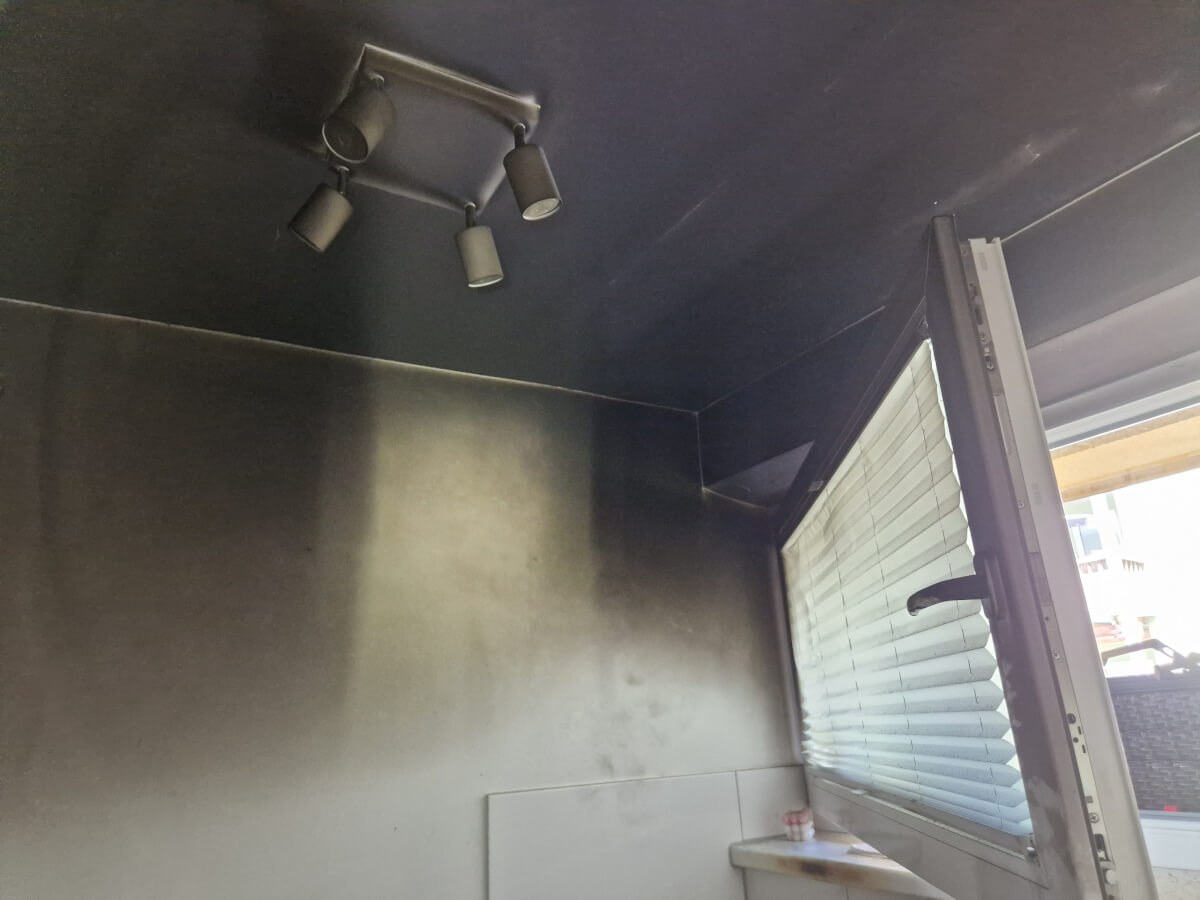 Anschließend ging unser Atemschutztrupp mit einem C-Rohr zum Innenangriff vor, belüftete die Wohnung mittels Druckbelüfter und brachte einen Rauchvorhang in Stellung. Zeitgleich wurde die Stromzufuhr zur Wohnung unterbrochen und die darüberliegende Wohnung auf möglichen Raucheintritt kontrolliert.