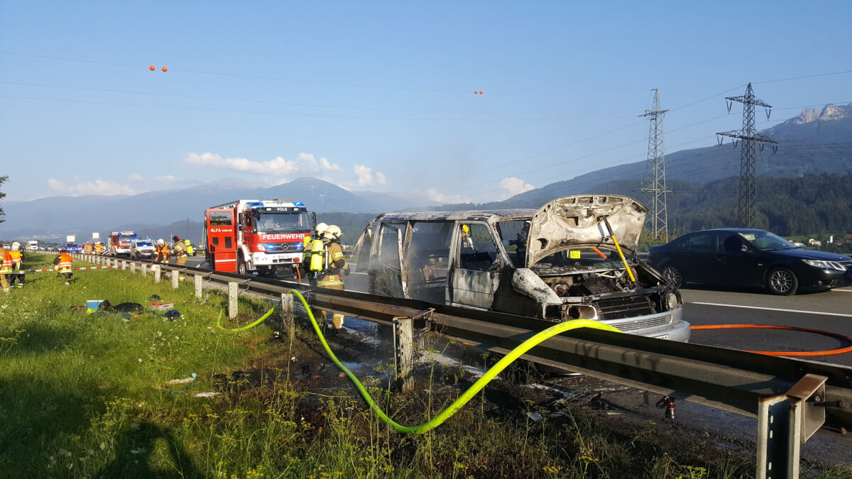Sonntagabend wurde die Feuerwehr Völs zu einem Fahrzeugbrand auf die A12 Inntalautobahn alarmiert. Bereits auf Anfahrt zum Einsatzort konnte eine starke Rauchentwicklung auf der Autobahn gesichtet werden, welche in weiterer Folge durch einen in Vollbrand stehenden VW Bus bestätigt wurde.