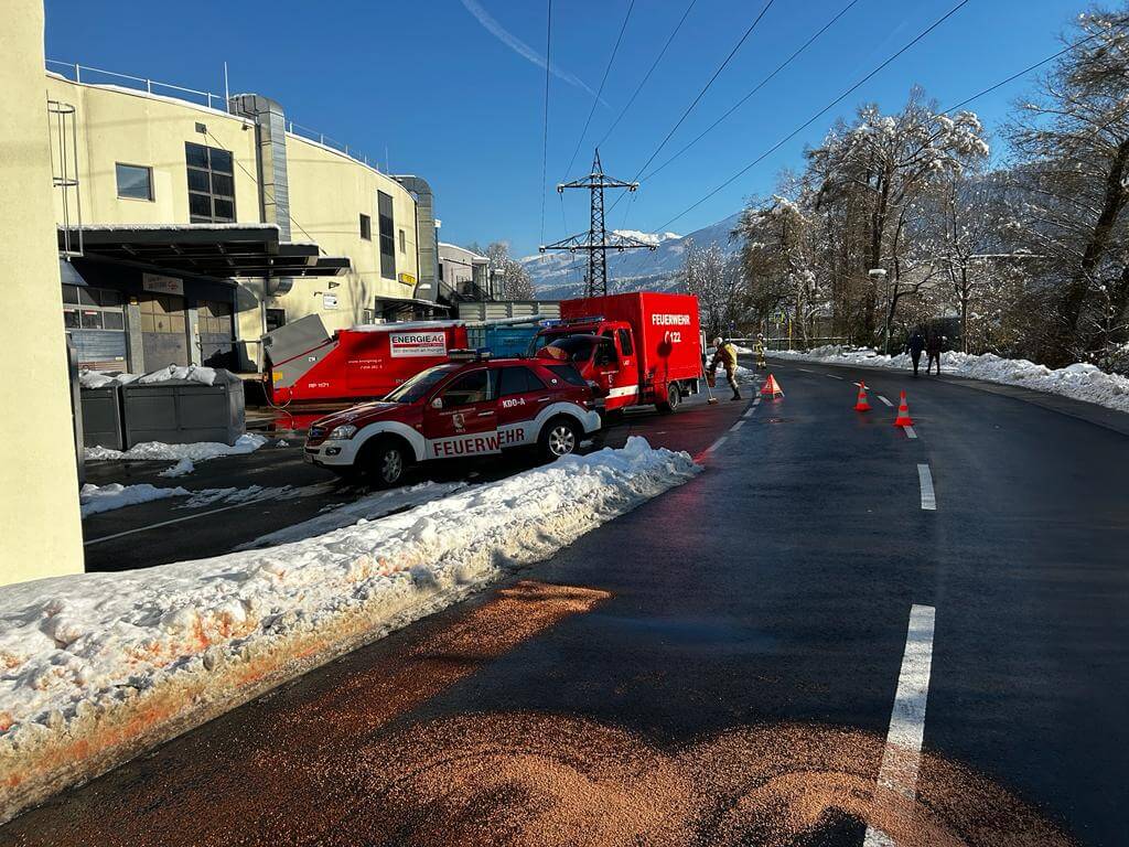 Die ausgelaufenen Betriebsmittel welche sich auf einer Länge von circa 100m zogen wurden mittels Ölbindemittel gebunden und der Einsatz im Anschluss beendet.