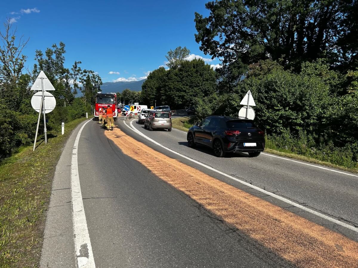 Grund war ein Betriebsmittelaustritt bei einem Bus. Die Ölspur wurde gemeinsam beseitigt und die Gefahr für den Verkehr beseitigt.