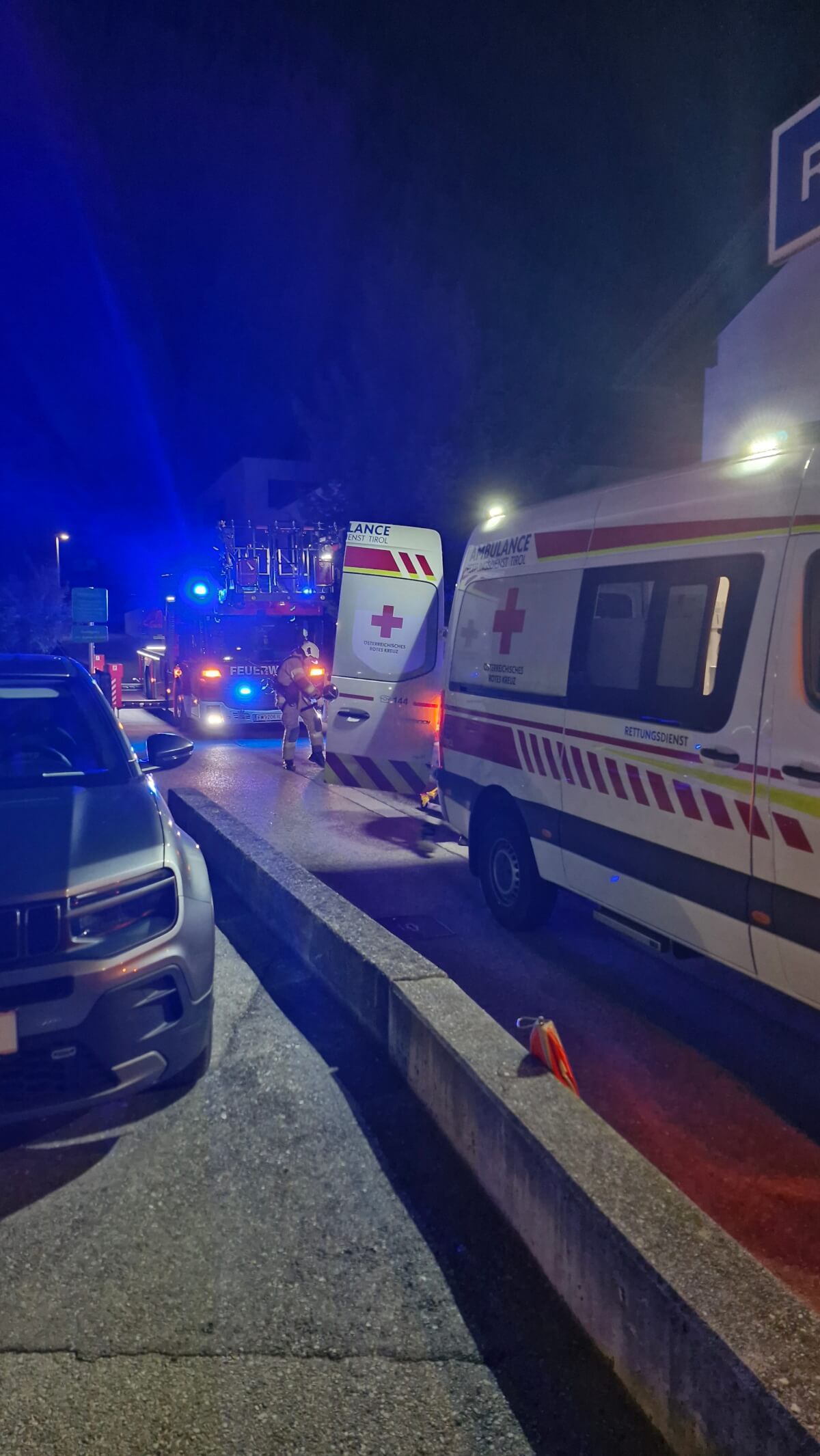 Mittels unserer Drehleiter konnte eine Person, welche medizinische Hilfe benötigte und deshalb aufrecht abtransportiert werden musste, aus einem der oberen Geschosse eines Mehrfamilienhauses abtransportiert werden.
