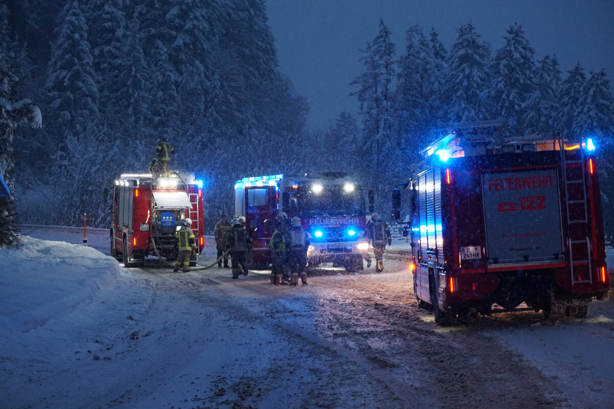 Am Sonntag Nachmittag wurde die Feuerwehr Völs gemeinsam mit der Feuerwehr Götzens zu einem technischen Einsatz auf der Götzner Straße alarmiert. Mehrere Bäume hingen durch die Schneelast in die Straße und gefährdeten somit den Verkehr. Eine Straßensperre wurde errichtet und mittels Einreishacken, Vorschlaghammer sowie Motorsäge die Bäume vom Schnee befreit. Zusätzlich wurde mit dem Hochdruck von zwei Tanklöschfahrzeugen der Schnee von den Bäumen gespritzt. Nach dem ein Schneepflug den restlich Schnee von der Straße entfernte, konnte die Sperre aufgehoben werden und die Feuerwehr Völs um 17:50 Uhr wieder einrücken.