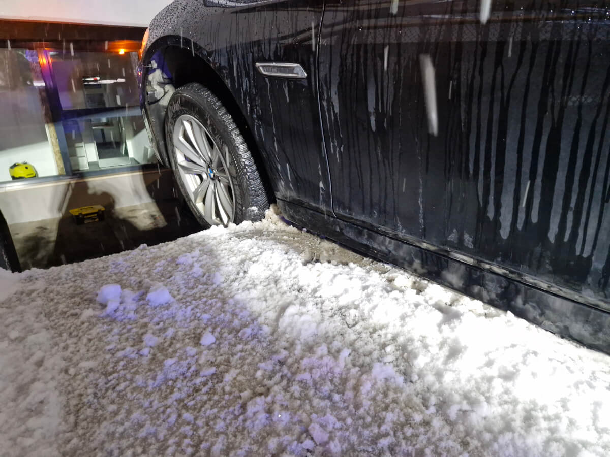 Da aufgrund der starken Schneefälle der Abschleppdienst nicht verfügbar war, wurde das Fahrzeug von uns gesichert und vorsichtig wieder auf die Straße gezogen.