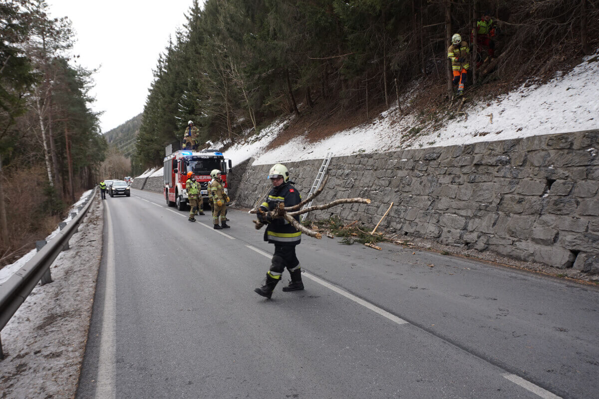 Freitag Mittag wurde die Feuerwehr Völs zu zwei umgefallenen Bäumen auf der Götzner Straße alarmiert. Durch einen Windstoß rutschten diese auf den Randbereich der Straße und stellten ein Verkehrshindernis dar. Während die Exekutive eine wechselseitige Verkehrsregelung aufbaute wurden die Bäume mit der Motorsäge gefällt und entfernt.