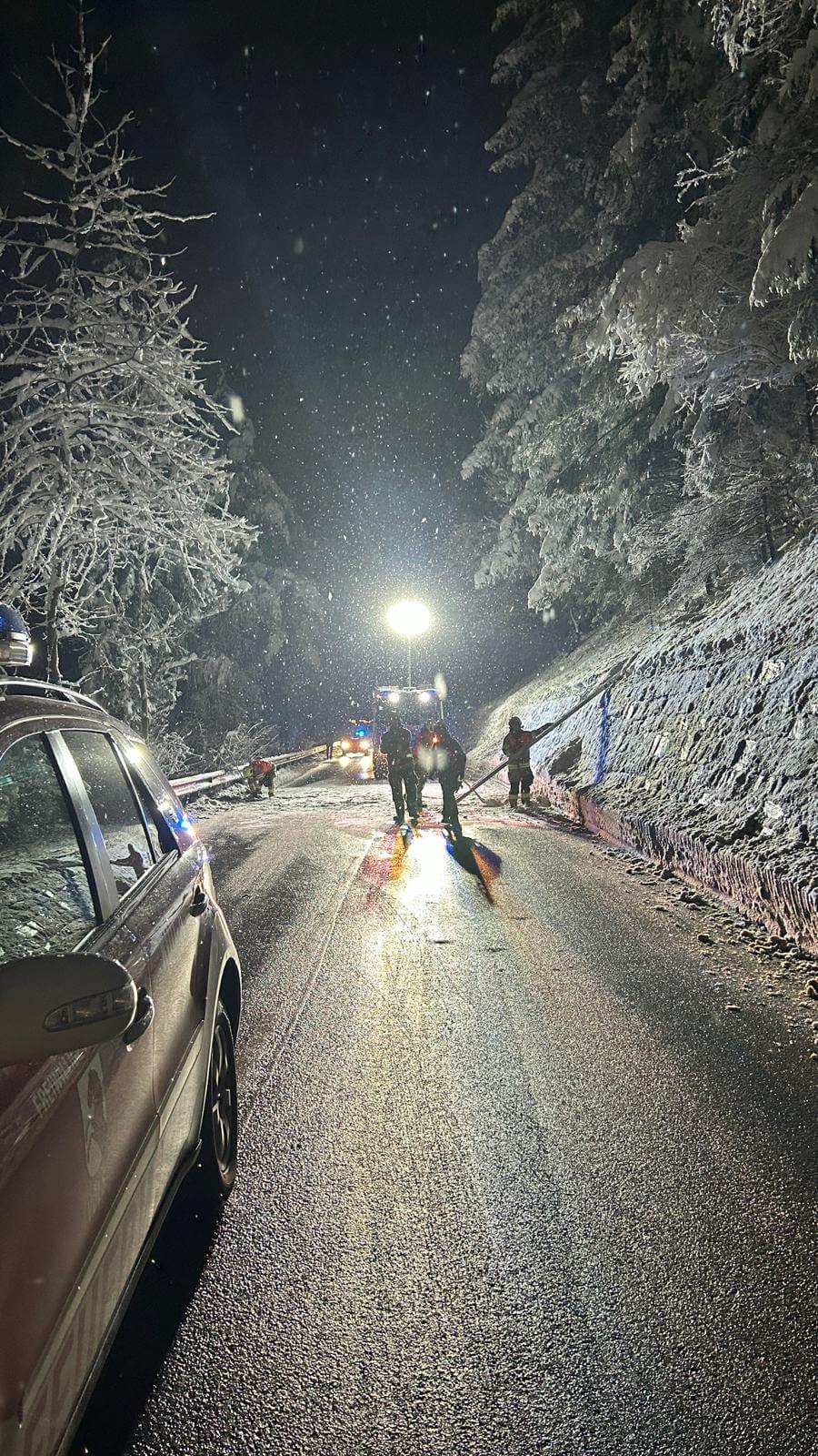 Ein Anrufer hatte gemeldet das ein umgefallener Baum auf der Götzner Straße die Fahrbahn blockiert. Bei eintreffen der Feuerwehr konnte festgestellt werden das ein Baum welcher der Schneelast nicht mehr Standgehalten hat umgestürzt war und die gesamte Fahrbahn blockiert hatte.