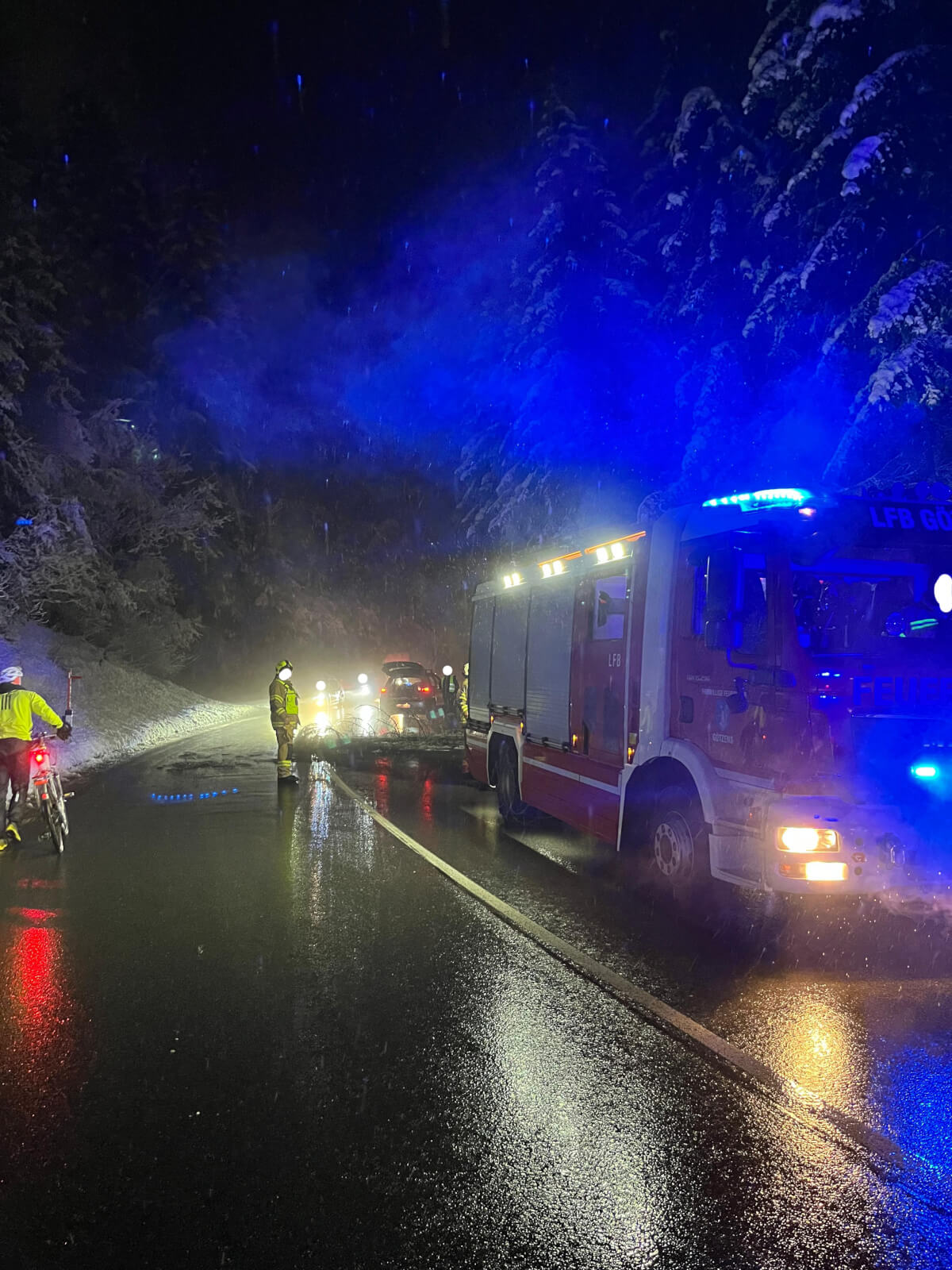 Am 23.02.2024 wurde die Feuerwehr Völs gemeinsam mit der Feuerwehr Götzens zu einem Baum auf Straße alarmiert.
