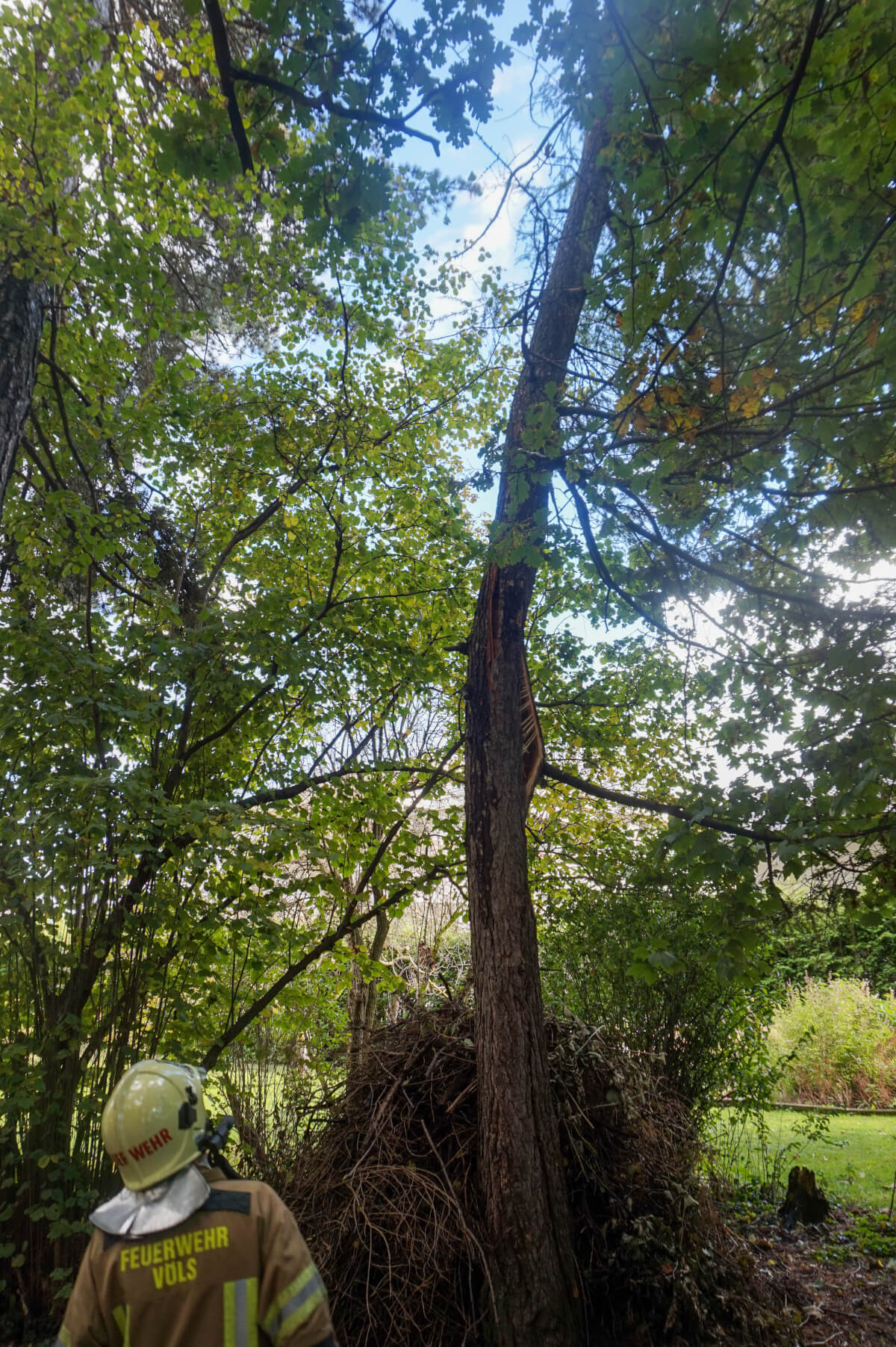 Samstag Nachmittag wurde die FFV zu einem technischen Einsatz alarmiert. Ein morscher Baum war in einer Höhe von etwa 4m über eine Länge von 2m eingeknickt und drohte umzustürzen. In unmittelbarer Nähe befanden sich Wohnhäuser sowie ein Spazierweg, welche von dem Baum bedroht wurden. Der Nahbereich wurde sofort abgesperrt und der Baum mittels Seilwinde niedergerissen.