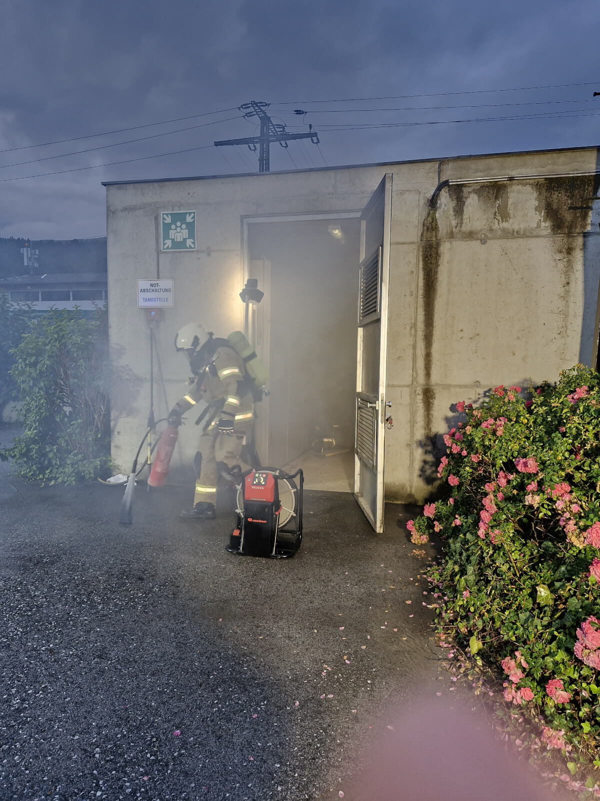 Am Samstagabend wurde die Feuerwehr Völs zu einem Elektrobrand in einem Trafogebäude gerufen.
