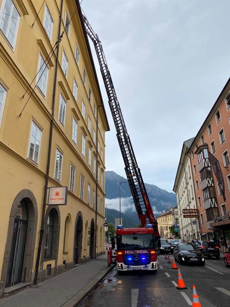 • Reichenauerstraße - DLK: Baum droht umzustürzen, Unterstützung durch die Feuerwehr Reichenau.• Innrain – DLK: Dach abgedeckt, Unterstützung durch die Feuerwehr Hungerburg.