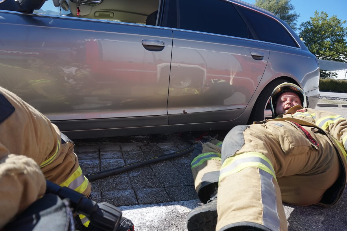 Am Freitagmittag wurde die Feuerwehr zu einem Fahrzeugbrand alarmiert. Der Brand konnte durch den Fahrzeugbesitzer mit einem Feuerlöscher eingedämmt werden. Das Fahrzeug wurde von der Feuerwehr gekühlt und mittels Wärmebildkamera auf Hitzequellen kontrolliert.
