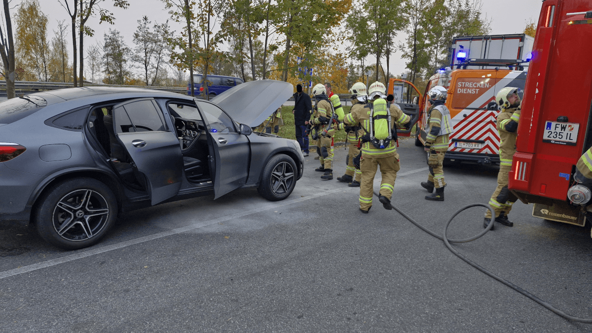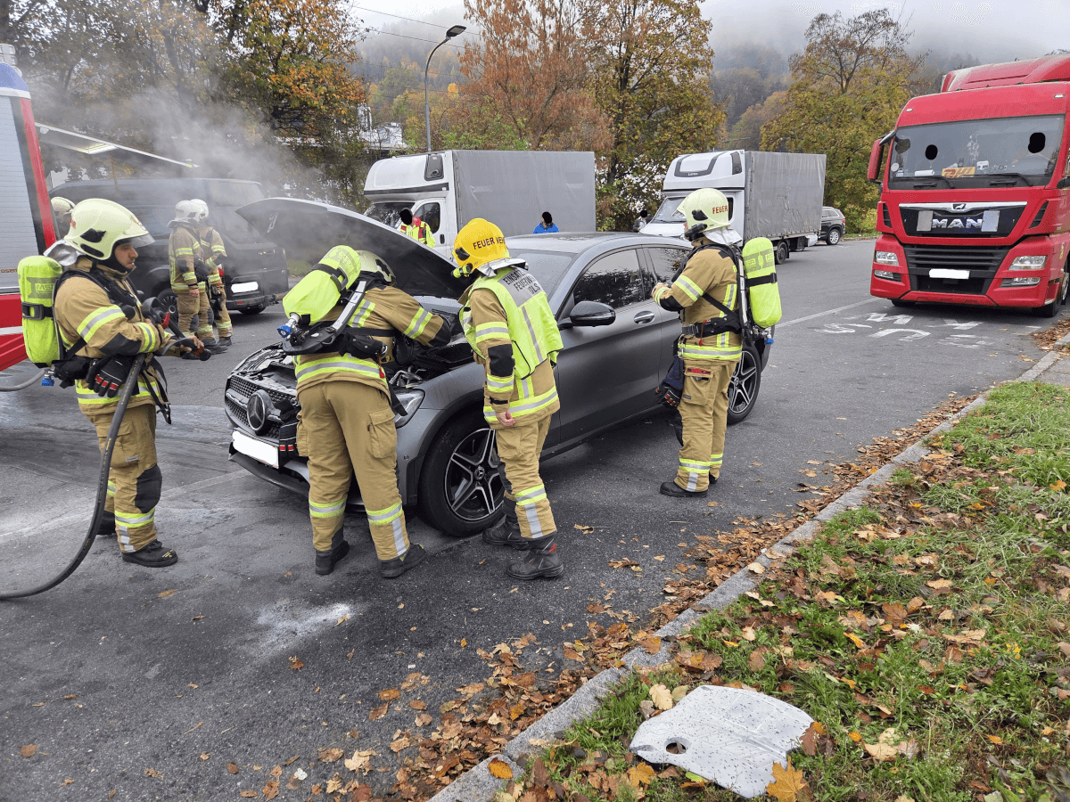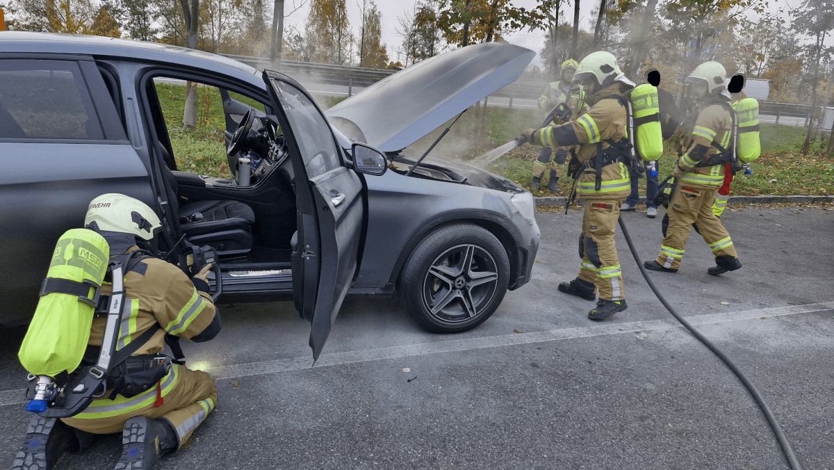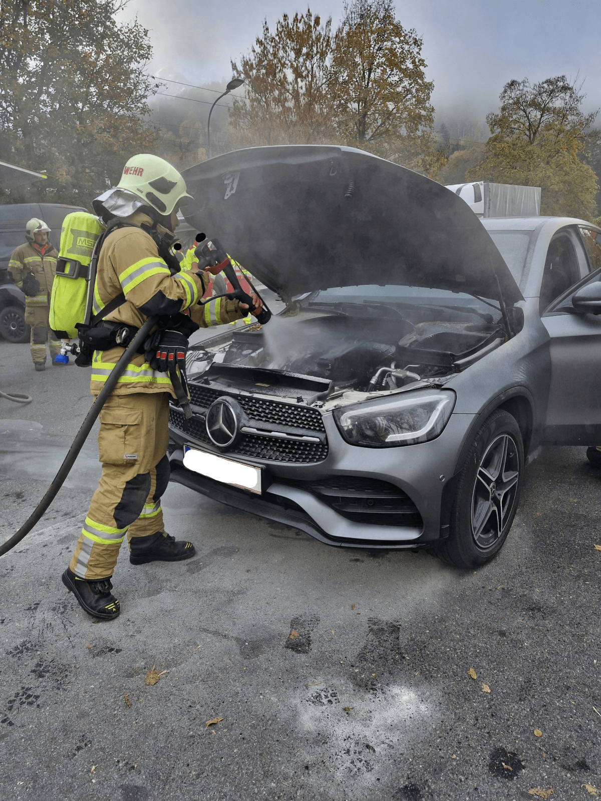 Wir kontrollierten das gesamte Fahrzeug mittels Wärmebildkamera und kühlten den Motorraum mit unserem HD-Schlauch ab, um eine erneute Brandentwicklung zu verhindern.