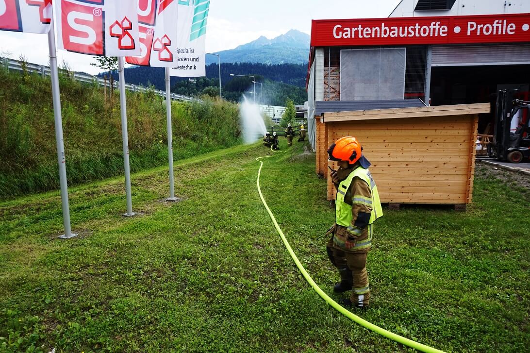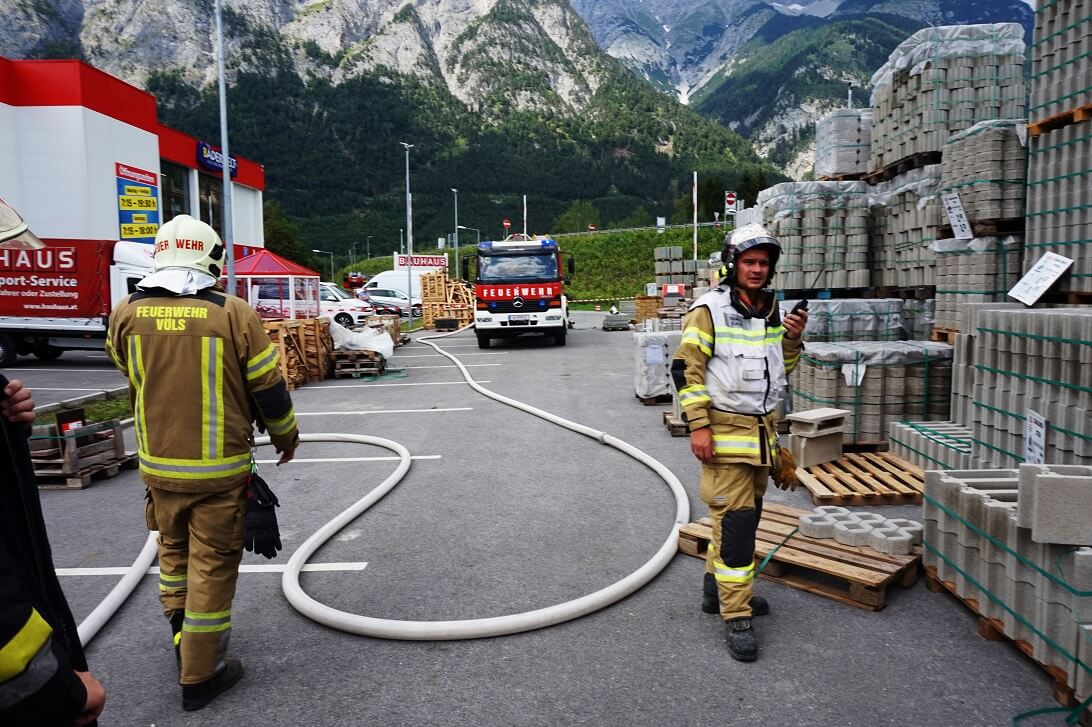Samstag Nachmittag wurde die Feuerwehr Völs zu einem Gasaustritt alarmiert. Das gesamte Areal wurde großräumig abgesperrt. Eine 11kg Propangasflasche war aus noch unbekannter Ursache undicht geworden. Unter Atemschutz und mit einem speziellen Gasmessgerät wurde das Gaslager nach der undichten Flasche abgesucht. Zeitgleich wurde ein Brandschutz aufgebaut sowie mit der Belüftung begonnen. Die beschädigte Falsche wurde ins Freie gebracht und dort kontrolliert entleert.