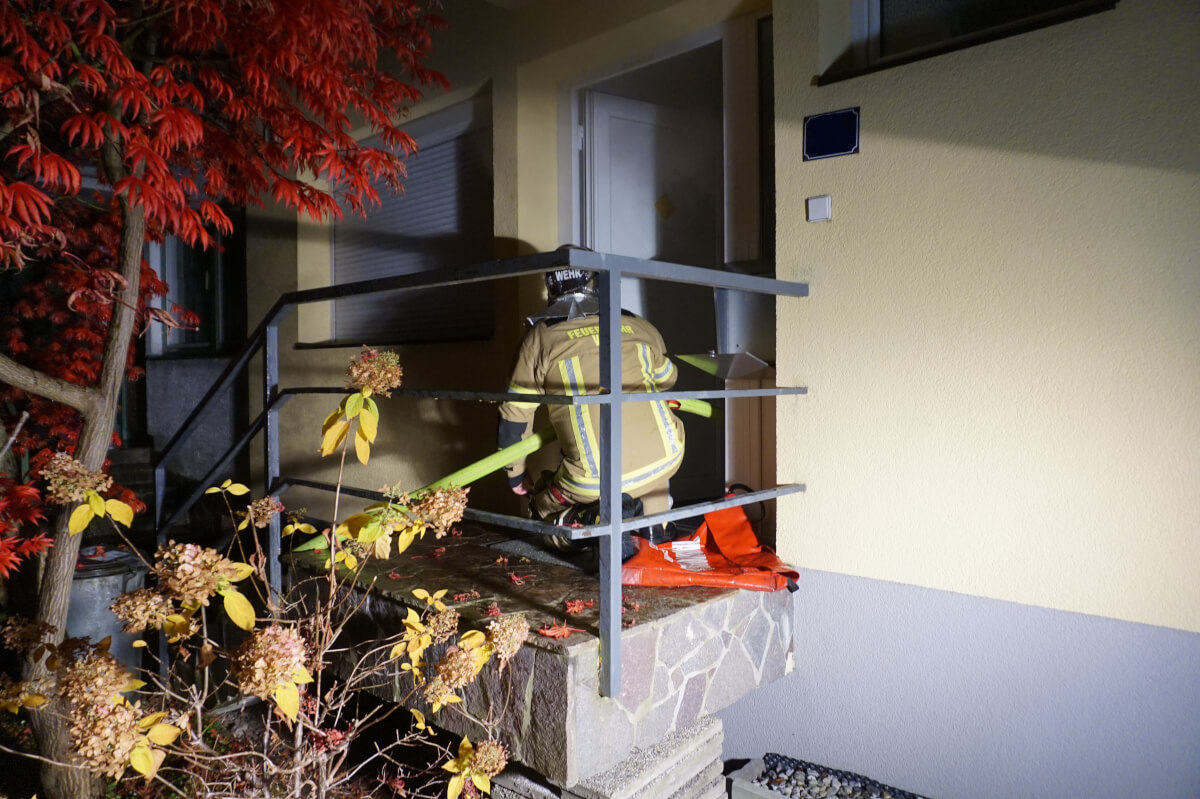 Der Erstangriff erfolgte über einen im Garten gelegenen Außenzugang des Untergeschosses. Die engen Platzverhältnisse und die starke Rauchentwicklung erschwerten ein Vorankommen des Atemschutztrupps. Nur mit Hilfe einer Wärmebildkamera war es möglich, sich rasch einen Weg durch den heißen Rauch zu bahnen. Durch die engen Räumlichkeiten wurde die Hitze kanalisiert und prallte mit voller Wucht auf den Atemschutztrupp.