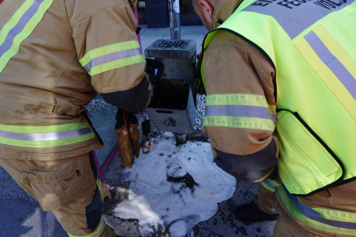 Am Samstagnachmittag wurde die Feuerwehr zu einem Müllkübelbrand im Bereich der Bushaltestelle an der Aflingerstraße alarmiert. Bei Eintreffen der Feuerwehr wurde der Brand bereits von einer Passantin gelöscht. Der Müllkübel wurde mit der Wärmebildkamera auf verbleibende Glutnester kontrolliert