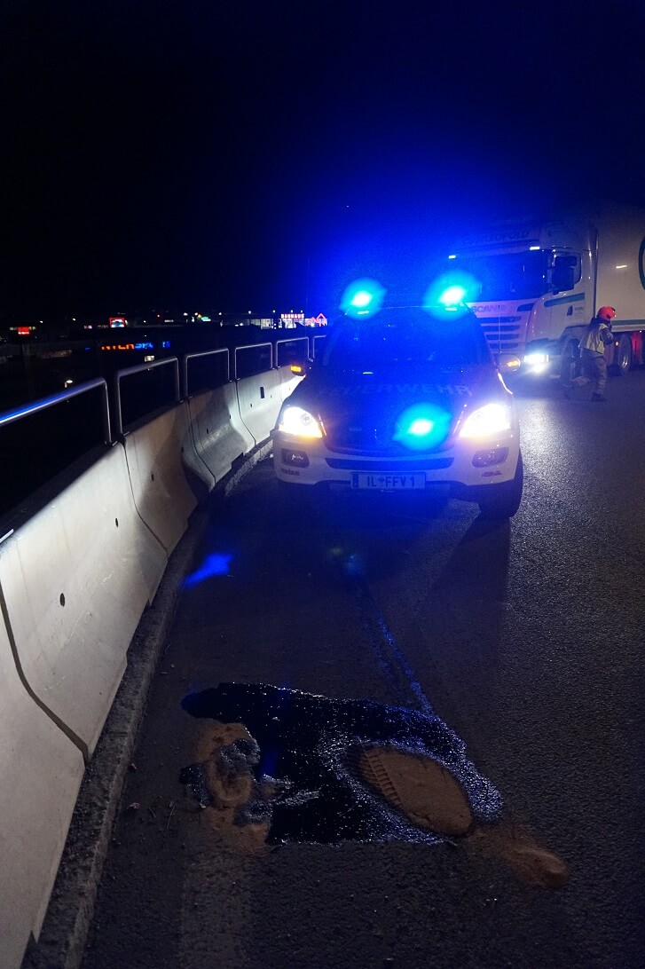 Mittwoch Abend wurde die FF-Völs zu einer Ölspur auf die B171b alarmiert. Aufgrund eines technischen Defektes verlor ein Fahrzeug Öl. Mittels Ölbindemittel wurde das Betriebsmittel gebunden und die Einsatzstelle der Straßenmeisterei übergeben.