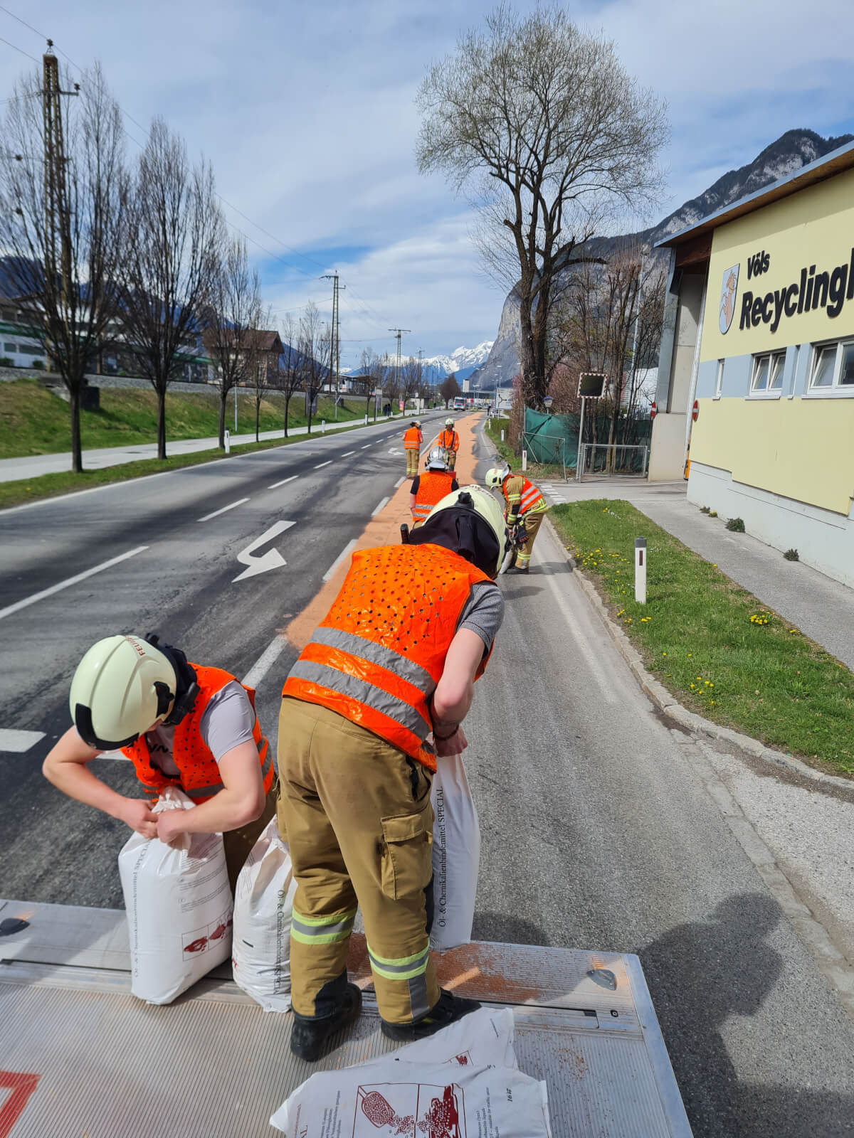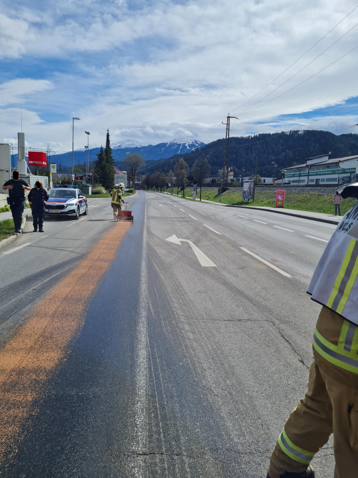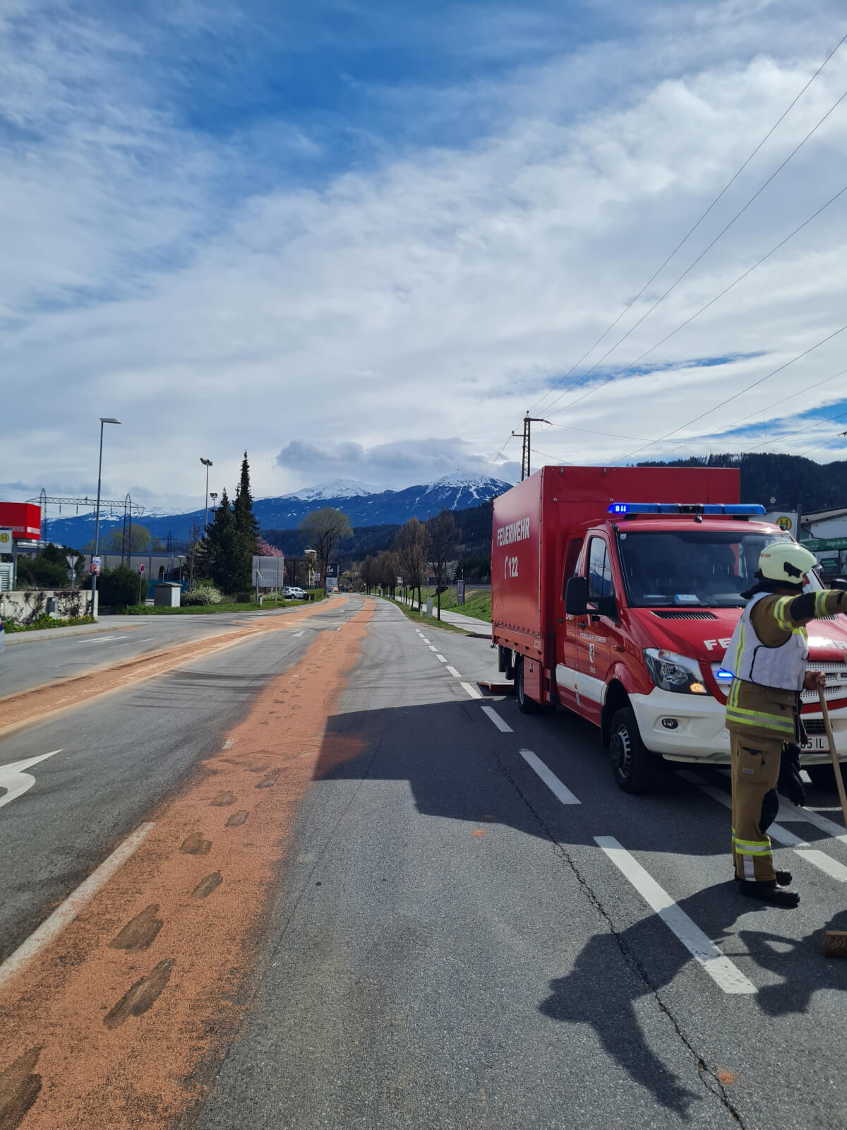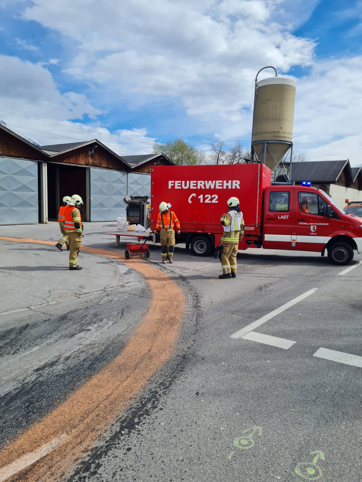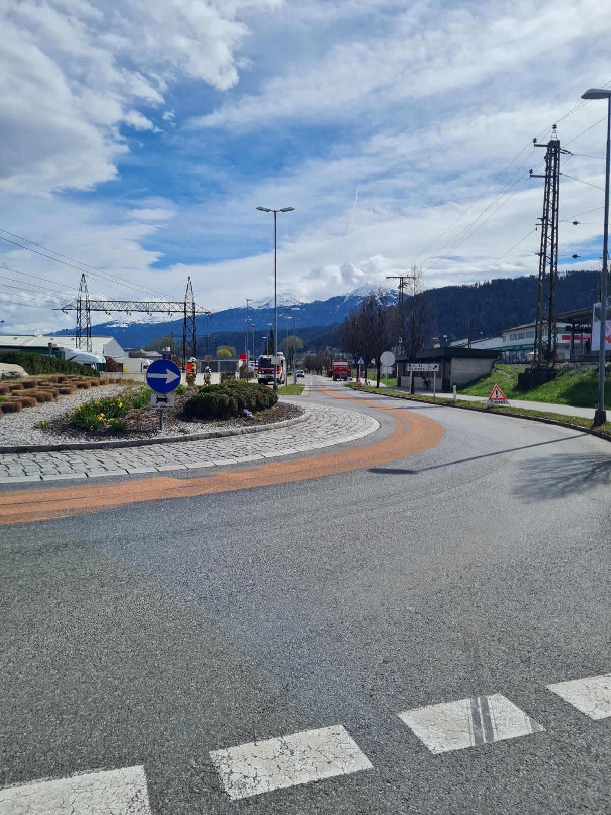 Aufgrund eines geplatzten Hydraulikschlauches wurde die Feuerwehr Völs zu einer Ölspur alarmiert.
