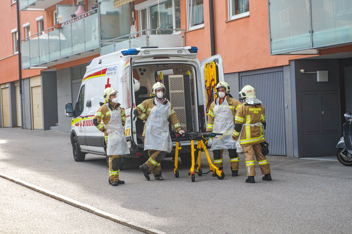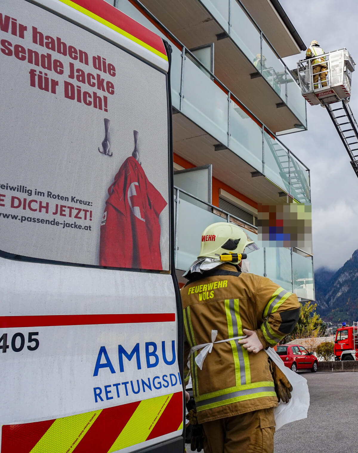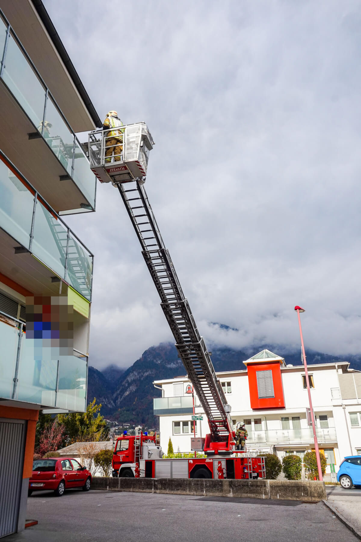 Gegen Mittag wurde die Feuerwehr Völs am Donnerstag zu einer eingeschlossenen Person in die Innsbrucker Straße alarmiert. Der Patient konnte dem Rettungsdienst die Wohnungstüre nicht mehr selbstständig öffnen. Um den Sanitätern den Zugang zum Patienten zu ermöglichen, musste das Schloss der Wohnungstüre durch die Feuerwehr gezogen werden. Nach der Erstversorgung wurde der Patient mittels Drehleiter aus der Wohnung gerettet und die Haustüre wieder verschlossen.