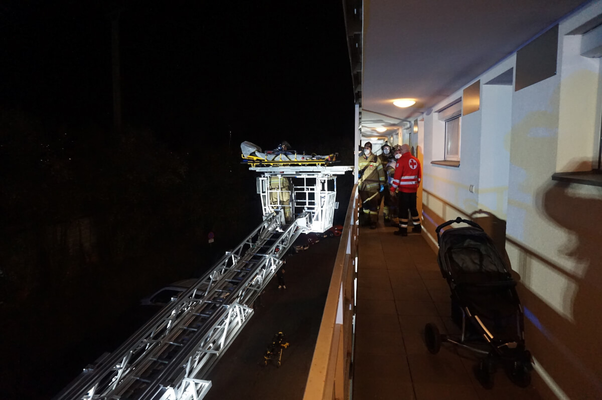 Gemeinsam mit der Polizei und dem Rettungsdienst wurde die FFV zu einer "Person in Notlage" alarmiert. Bei Eintreffen war der Rettungsdienst bereits in der Wohnung. Ein Nachbar konnte über den Balkon klettern und die Türe von innen öffnen. Während der Notarzt den Patienten medizinisch erst versorgte wurde durch die Feuerwehr Völs eine Drehleiterrettung vorbereitet.