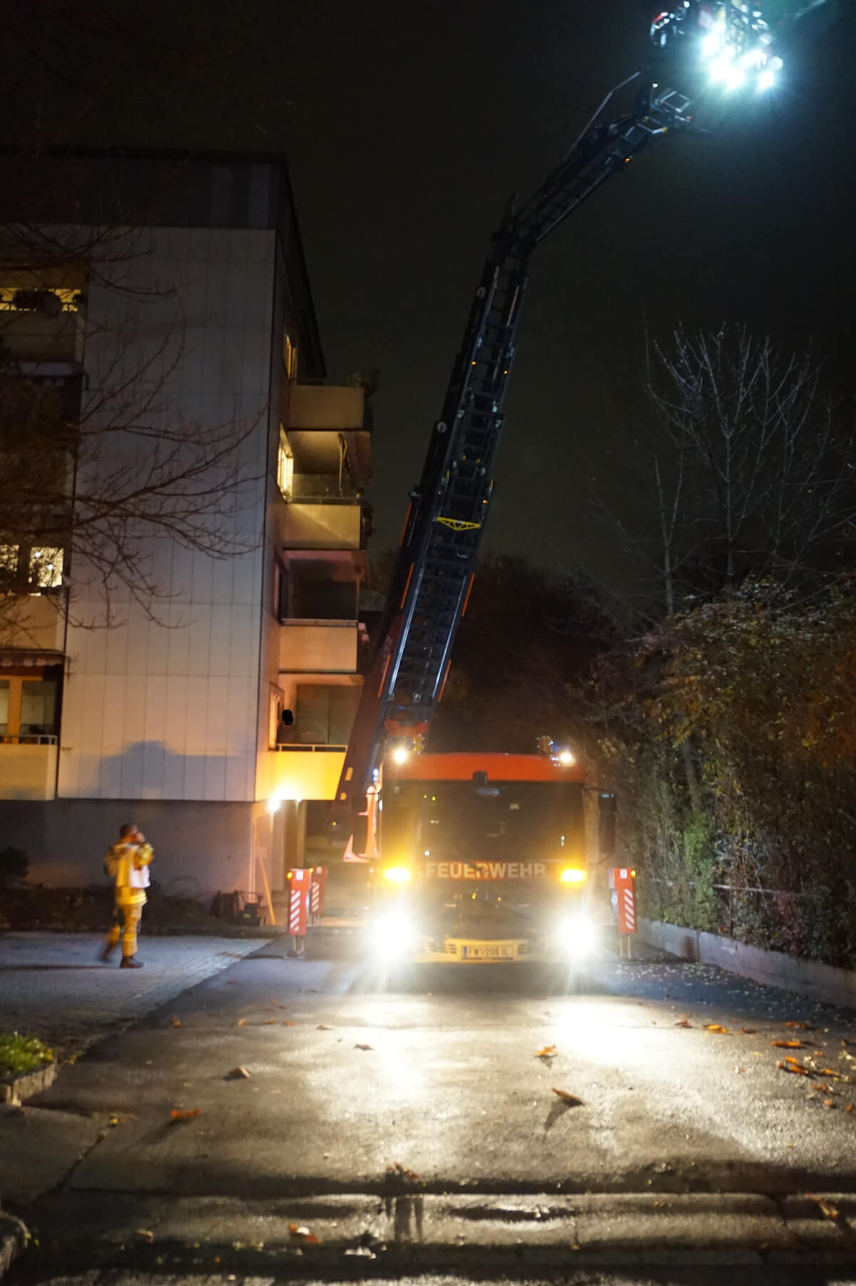 Aufgrund des schlechten Zustands eines Patienten musste die Feuerwehr Völs eine Person in Zusammenarbeit mit dem Rettungsdienst sowie eines Notarztes aus einem höher gelegenen Stockwerk mittels Drehleiter abtransportieren. Im Anschluss wurde der Patient an den Rettungsdienst übergeben und die Feuerwehr Völs konnte wieder einrücken.