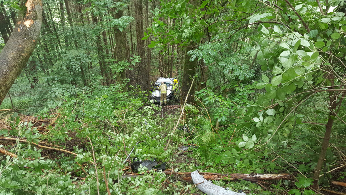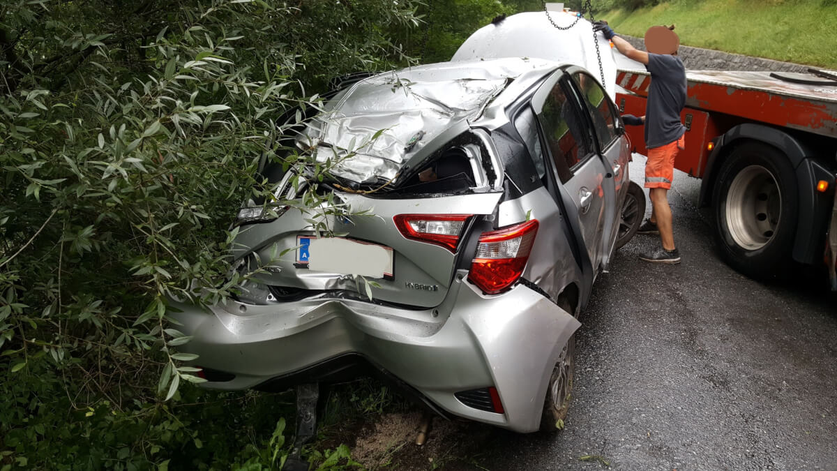 Am Mittwoch wurde die Feuerwehr Völs zu einem schweren Verkehrsunfall auf die Götzner Straße alarmiert. Aus bisher unbekannter Ursache, geriet das Fahrzeug von der Fahrbahn ab und blieb etwa 30m unterhalb der Straße in steilem abschüssigem Gelände liegen. Die beiden verletzen Fahrzeuginsassen konnten sich selbst aus dem total zerstörten Wrack befreien und noch selbstständig die Böschung hinauf klettern. Das Fahrzeug wurde im Anschluss mittels Seilwinde geborgen. Die Landesstraße musste für die Dauer des Einsatzes vollständig gesperrt werden.