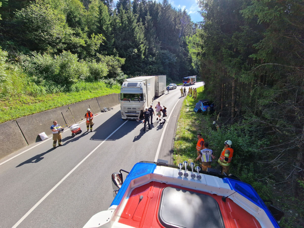 Die Anfahrt zum Einsatzort gestaltete sich für die Feuerwehren äußerst schwierig. Bereits kurz nach dem Unfall bildete sich eine lange Fahrzeugkolone entlang der Landesstraße. Viele ungeduldige Lenker versuchten noch auf der schmalen Landesstraße zu wenden und suchten sich einen alternativen Weg. Aufgrund des Staus, der quer stehenden Fahrzeuge sowie dem dadurch entstandenen Gegenverkehr, war es der Feuerwehr nur sehr schwer möglich den Einsatzort zu erreichen.