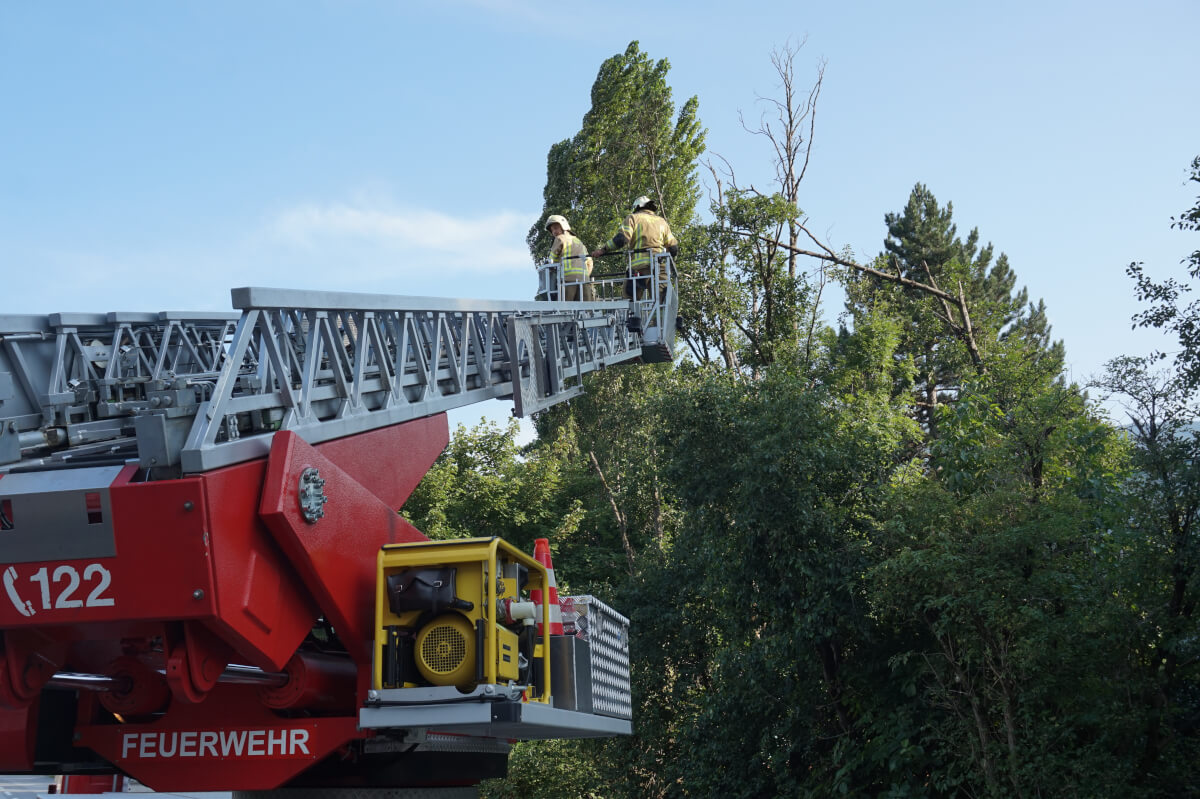 Am Freitagabend wurde die Feuerwehr Völs zu einer technischen Hilfeleistung in der Nähe vom McDonalds alarmiert. Ein aufmerksamer Bürger sah einen Ast, der drohte auf die Straße zu brechen. Die Straße wurde kurzzeitig gesperrt und mittels Drehleiter konnte der Ast händisch entfernt werden. Nach ca. 20 Minuten konnte die Feuerwehr wieder in das Gerätehaus einrücken.