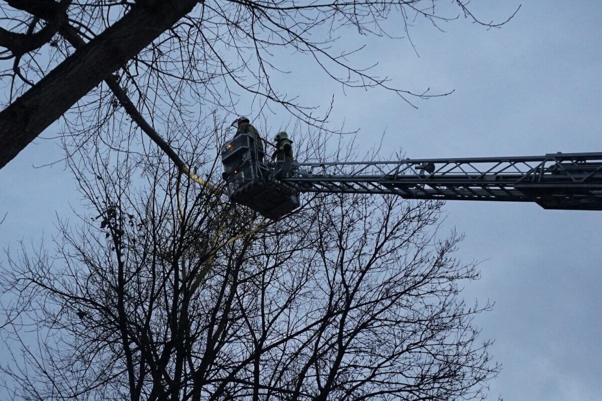 Am späten Montagnachmittag wurde die Feuerwehr Völs zu einer technischen Hilfeleistung am Gießenweg neben dem "JOY Kinderparadies" alarmiert. Durch Windböen brach ein Ast ab und verhängte sich im Dickicht am daneben liegenden Baum. Er stellte somit eine unmittelbare Gefahr für den darunter liegenden Fußgänger- und Fahrzeugverkehr dar. Bei Eintreffen wurde eine Straßensperre errichtet und die Drehleiter in Stellung gebracht. Mit Motorsäge konnte der Zweig abgetrennt und danach die Straße gesäubert werden.
