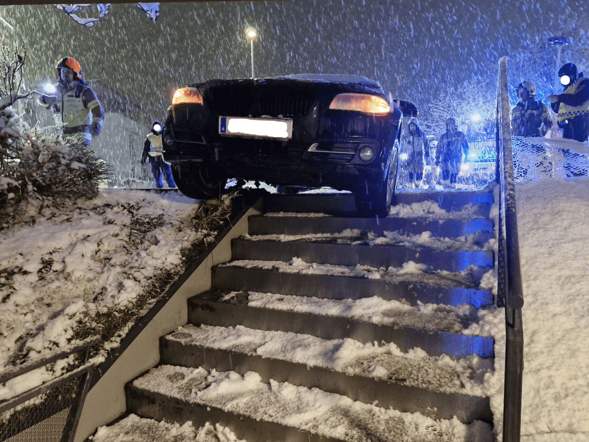 Ein Fahrzeug war von der Aflingerstraße abgekommen und drohte nahe einer Treppe abzustürzen.