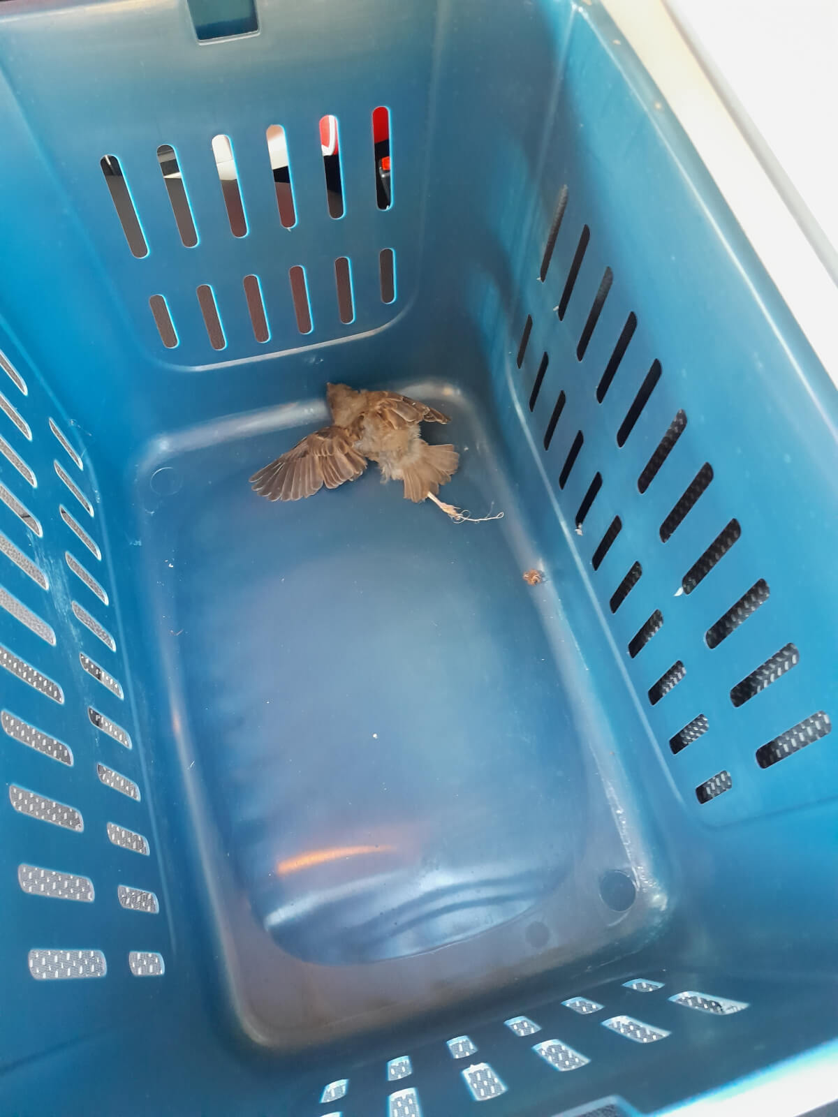 Ein Vogel hatte sich in einer Plastikschnur verhängt und hing an der Dachrinne eines Wohnhauses. Das Tier wurde mittels Drehleiter gerettet und zur weiteren Versorgung dem Tierheim übergeben.