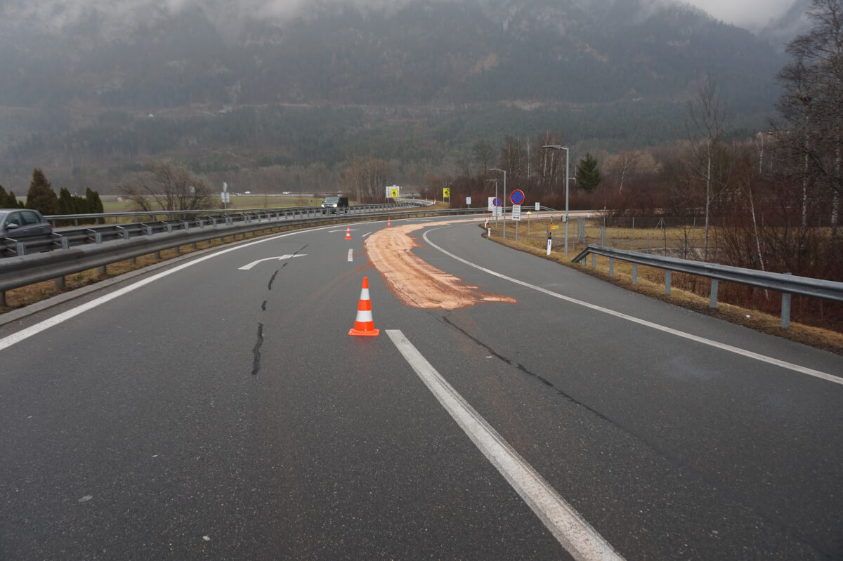 Bindemittel wurde großflächig auf der vorhandenen Kraftstoffspur aufgebracht. Für die Dauer des Einsatzes wurde die Auffahrt zusammen mit der Polizei sowie der Asfinag gesperrt.