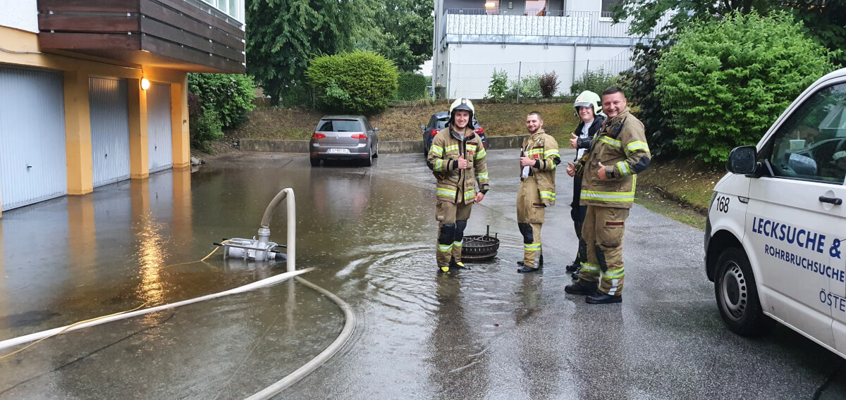 Wasserschaden Dach, Innsbrucker Straße 38, 20:59 UhrAufgrund von Umbauarbeiten kam es zu einem Wasserschaden im Dachboden über das Stiegenhaus bis in den Keller. Der Dachboden wurde vom Wasser und nassen Sägemehl befreit und das Dach mit Abdeckplanen und Kanthölzern provisorisch abgedichtet, um einen weiteren Wasserschaden zu verhindert.
