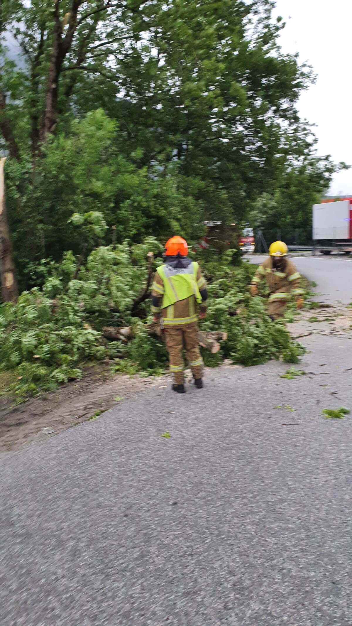 Am Pfingstsonntag wurde die Feuerwehr Völs zu mehreren Einsätzen aufgrund starker Windböen gerufen. Erste Einsatzmeldung waren Sicherungsarbeiten bei einem abgedeckten Hausdach, welche in Zusammenarbeit mit dem Hausmeister durchgeführt wurden. Weitere Einsätze waren die Entfernung von Bäumen und Ästen von Straßen und die Instandsetzung von Baustellenabsicherungen. Nach 1,5h waren die Einsatzszenarien abgearbeitet und die Feuerwehr Völs konnte wieder einrücken.