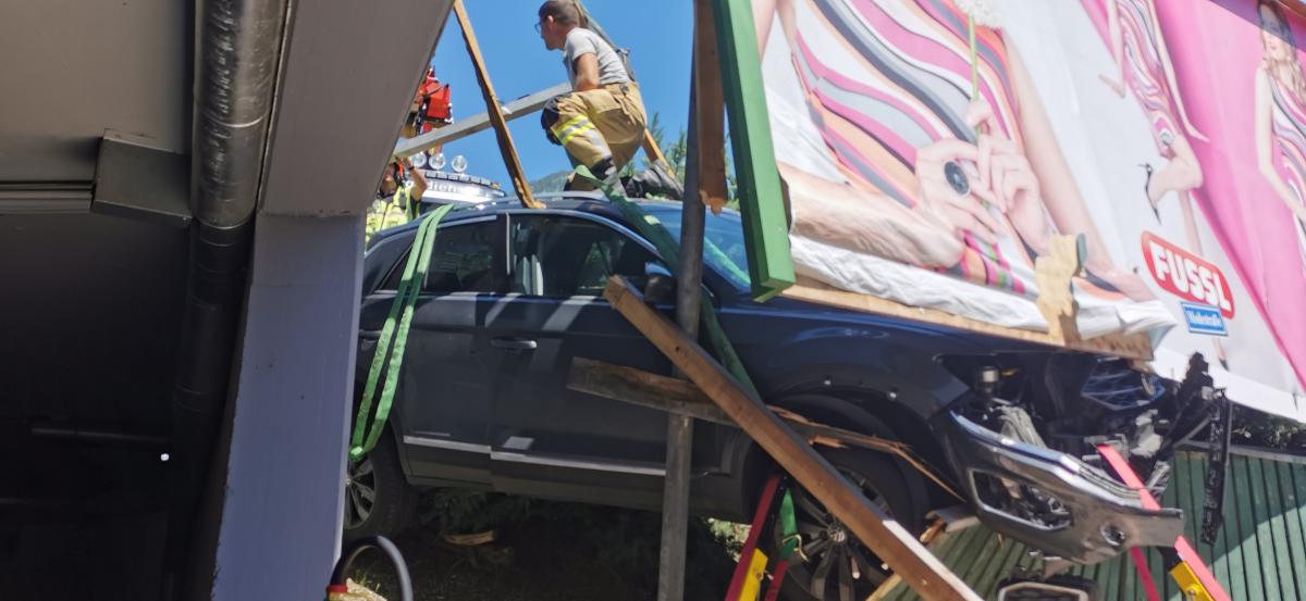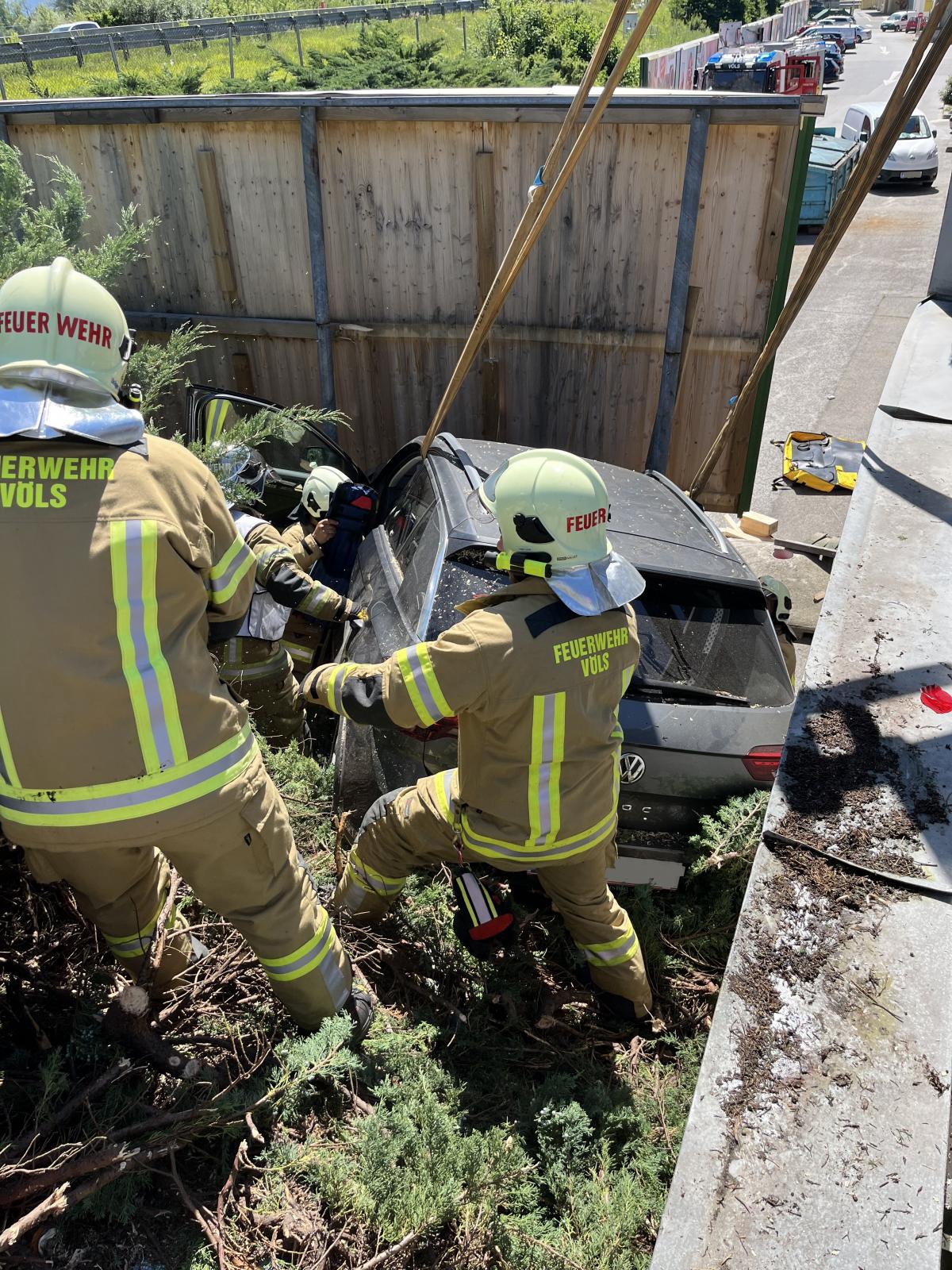 Am Dienstagnachmittag wurde die Feuerwehr Völs zu einem Verkehrsunfall am Gelände des Einkaufszentrums Cyta gerufen. Bei Eintreffen wurde festgestellt, dass ein PKW über steiles Gelände beim Abfahren von einer Parkdeckrampe abgestürzt war und sich eine Person noch im Fahrzeug befunden hat. Die Erstmaßnahmen waren die Fahrzeugstabilisierung und Patientenbetreuung in Form eines inneren Retters. In Zusammenarbeit mit der Rettung und dem Notarzt wurde die Person aus dem verunfallten Fahrzeug mittels KED-System (Rettungskorsett zur Stabilisierung der Wirbelsäule) und Spineboard gerettet. Weitere Maßnahmen waren die Absicherung der Unfallstelle und Beihilfe beim Abtransport des Fahrzeuges.