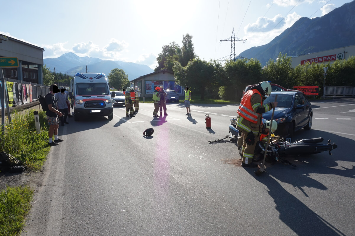 Am 25.05. wurde die Feuerwehr Völs zu einem technischen Einsatz auf die L11 Völser Straße alarmiert. Bei eintreffen stellte sich heraus, dass es sich um einen Verkehrsunfall zwischen einem PKW und einem Motorrad handelt. Die verletzte Lenkerin des Zweirads wurde bei eintreffen bereits vom Rettungsdienst versorgt. Die Aufgabe der Feuerwehr Völs bestand darin, den Brandschutz sicher zu stellen, den Verkehr zu regeln und die ausgelaufenen Betriebsmittel zu binden. Nach freiräumen der Unfallstelle konnte die Einsatzstelle an die Exekutive übergeben werden.