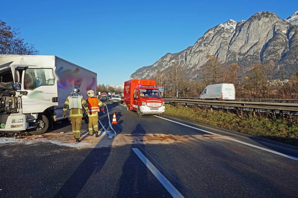 LKW vs. LKW - Ein Auffahrunfall ereignete sich Donnerstag morgens kurz nach 7 Uhr auf der Inntalautobahn zwischen Völs und Innsbruck. Ein nachkommender LKW übersah den vor ihm angehaltenen LKW und fuhr diesem auf. Die Feuerwehr Völs führte eine Verkehrsabsicherung durch und stellte den Brandschutz sicher. Die beiden Fahrer wurden durch den Rettungsdienst versorgt und konnten sich selbst aus den Fahrzeugen befreien. Im Anschluss musste noch das große Trümmerfeld beseitigt werden. Zusammen mit der Asfinag und den Abschleppunternehmen wurde die Fahrbahn gereinigt. Nach etwa drei Stunden konnte die Fahrbahn wieder für den Verkehr freigegeben werden. "Glück im Unglück" hatten die beiden Fahrer.