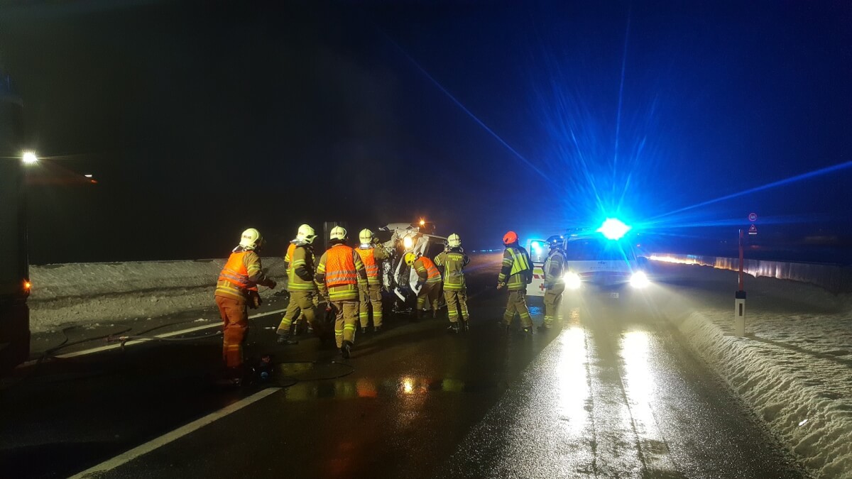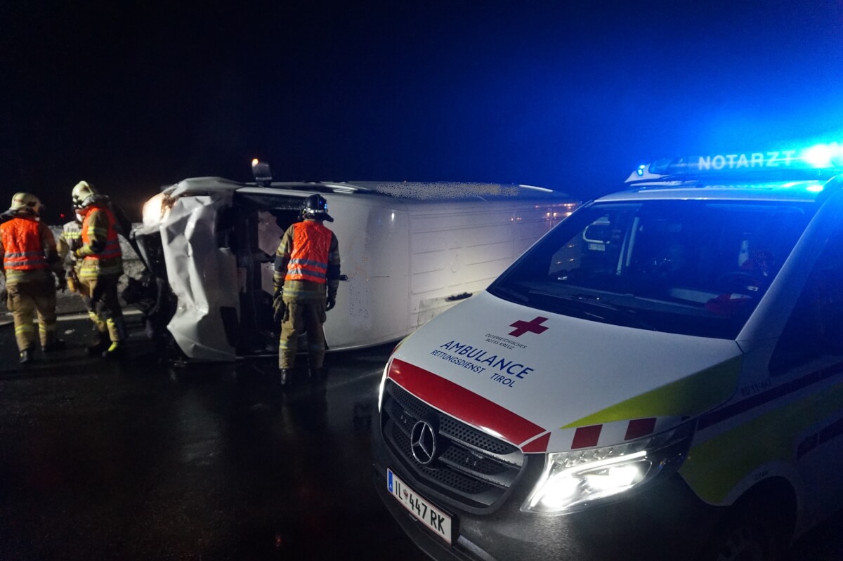 Freitag kurz nach 5 Uhr wurde die Feuerwehr Völs mit der Meldung: "Verkehrsunfall, Fahrzeug überschlagen, Person eingeklemmt" auf die A12 Inntalautobahn Fahrtrichtung Landeck alarmiert. Der Lenker eines Kleintransporters kollidierte mit der Fahrbanbegrenzung, fuhr auf ein zweites Fahrzeug auf und kam auf der rechten Spur seitlich zum liegen. Das zweite Fahrzeug kam aufgrund des Aufpralls mit zwei Reifen auf die Fahrbahnbegrenzung, der Lenker konnte das Fahrzeug jedoch noch abfangen und dieses sicher am Pannenstreifen abstellen. An beiden Fahrzeugen entstand ein Totalschaden. Der Lenker des Kleintransporters musste über die Windschutzscheibe aus dem Auto befreit werden und wurde anschließend durch den Rettungsdienst versorgt und abtransportiert. Die Autobahn musste zeitweise komplett gesperrt werden. Die genaue Unfallursache ist noch unbekannt und Gegenstand der Ermittlungen.