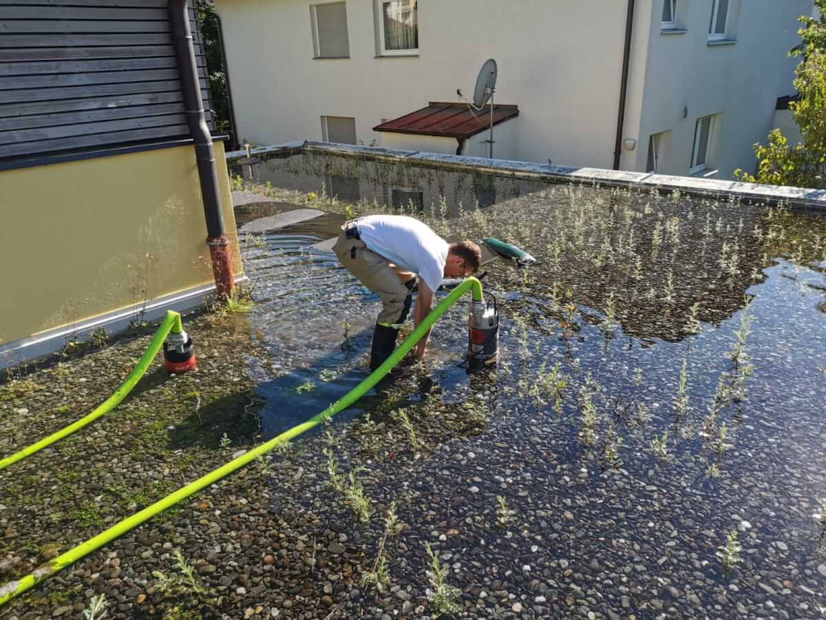 Am Samstagabend wurde die Feuerwehr telefonisch zu einem Wasserschaden gerufen. Durch eine geplatzte Zuleitung staute sich das Wasser auf einem Vordach und in der Garage. Mittels Tauchpumpen wurde das Wasser abgepumpt und die Garage von dem eintretenden Wasser befreit.