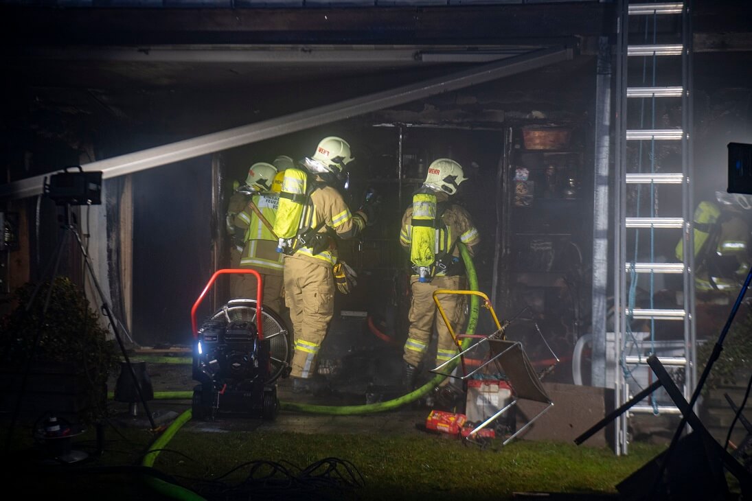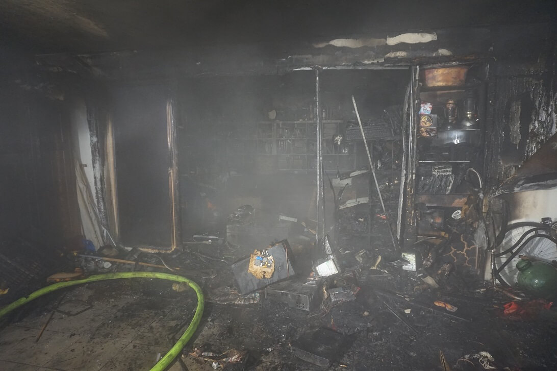 Drei Atemschutztrupps befanden sich im Löscheinsatz. Parallel über den Garten sowie die Wohnungstüre wurde ein Innenangriff mit schwerem Atemschutz vorgenommen. Mit einem Außenangriff wurde das Überschlagen auf weitere Wohnungen verhindert.