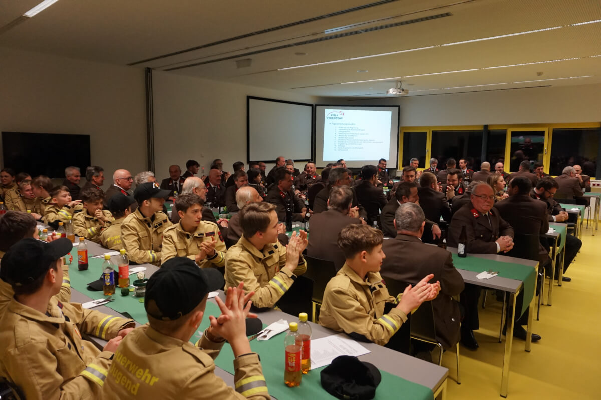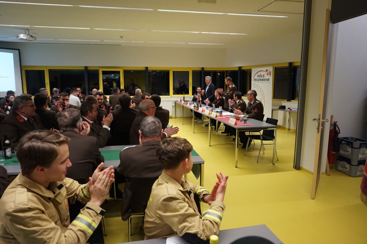 Kommandant StV. OBI Klaus Maffey berichtete über die Einsätze und Übungen des vergangenen Jahres, wobei neben den bestandenen Leistungsabzeichen „Atemschutz-Bronze“ durch FM Thomas Pokorny, OFM Marco Pertl und OFM Christoph Posch; „Atemschutz-Silber“ durch LM Bernhard Ruetz, OLM Florian Resch und HFM Markus Voppichler und „Atemschutz-Gold“ durch HFM Josef Rangger, OFM Dominik Musanovic und FM Clemens Rangger sowie den Unwetter-Ereignissen im Sommer - die Übernahme der neuen Drehleiter das größte Highlight darstellte.